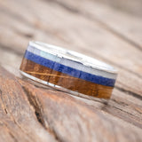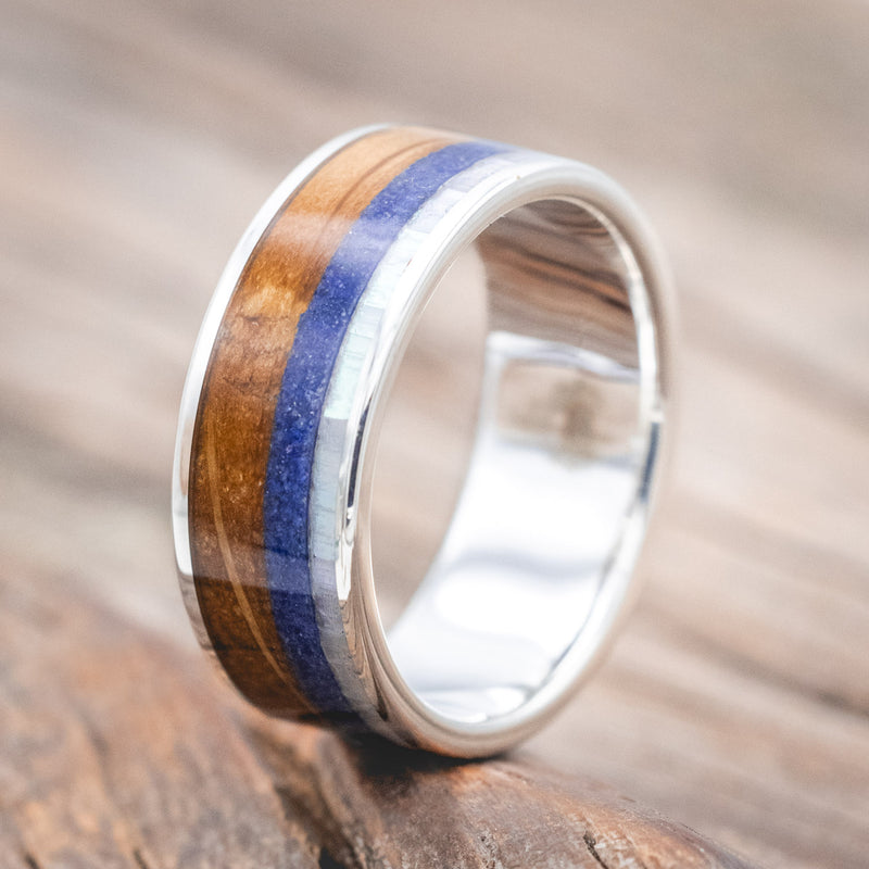 "RAINIER" - MOTHER OF PEARL, LAPIS LAZULI & WHISKEY BARREL OAK WEDDING BAND