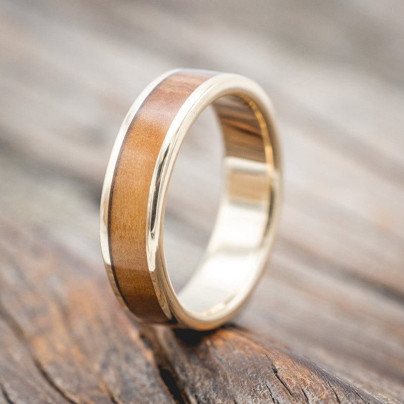 • Ring Style: "Rainier" is a custom, handcrafted men's wedding ring featuring an olive wood inlay. Additional inlay options are available upon request.