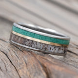"RAPTOR" - MALACHITE, ANTLER & 14K GOLD INLAY WEDDING RING