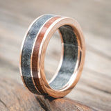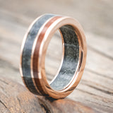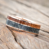 "RAPTOR" - MOSS AGATE & REDWOOD WEDDING BAND WITH A MOSS AGATE LINING