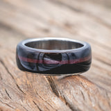 "REMMY" - EBONY WOOD WEDDING BAND WITH A PURPLE HEART WOOD INLAY