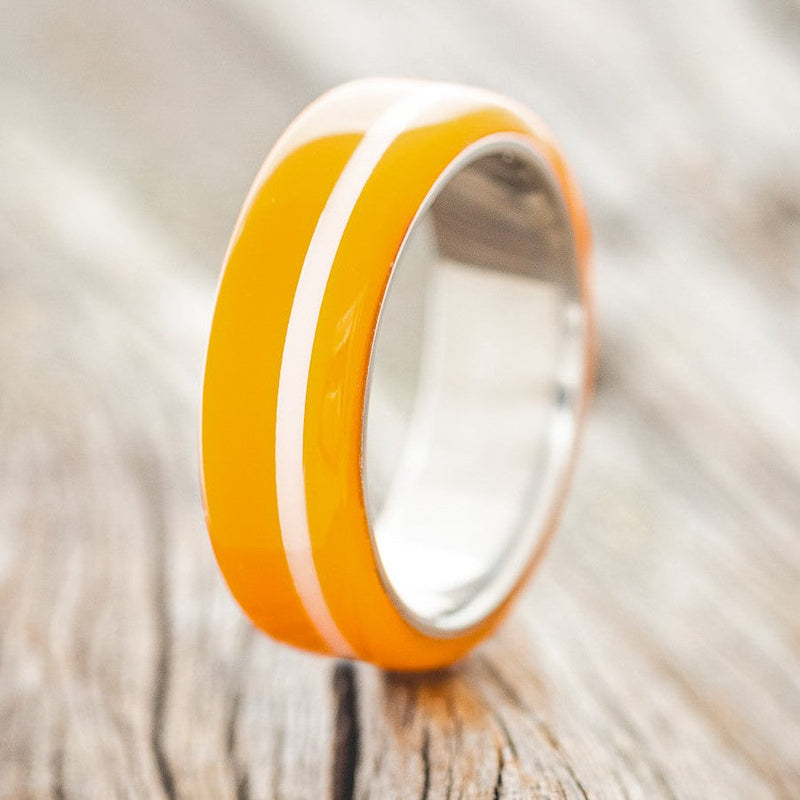 "REMMY" - ORANGE & WHITE ACRYLIC WEDDING BAND