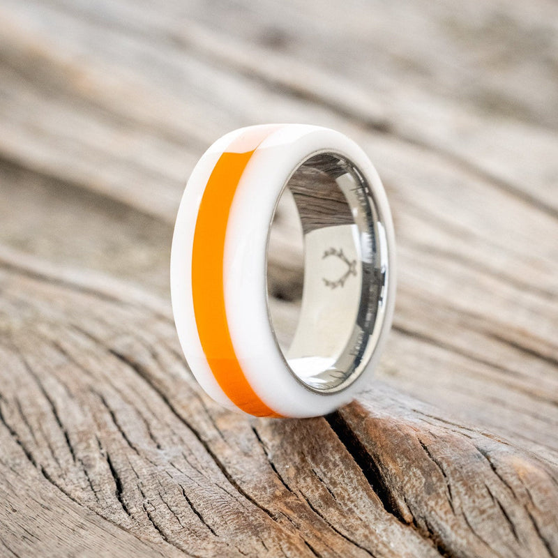"REMMY" - ORANGE & WHITE ACRYLIC WEDDING BAND