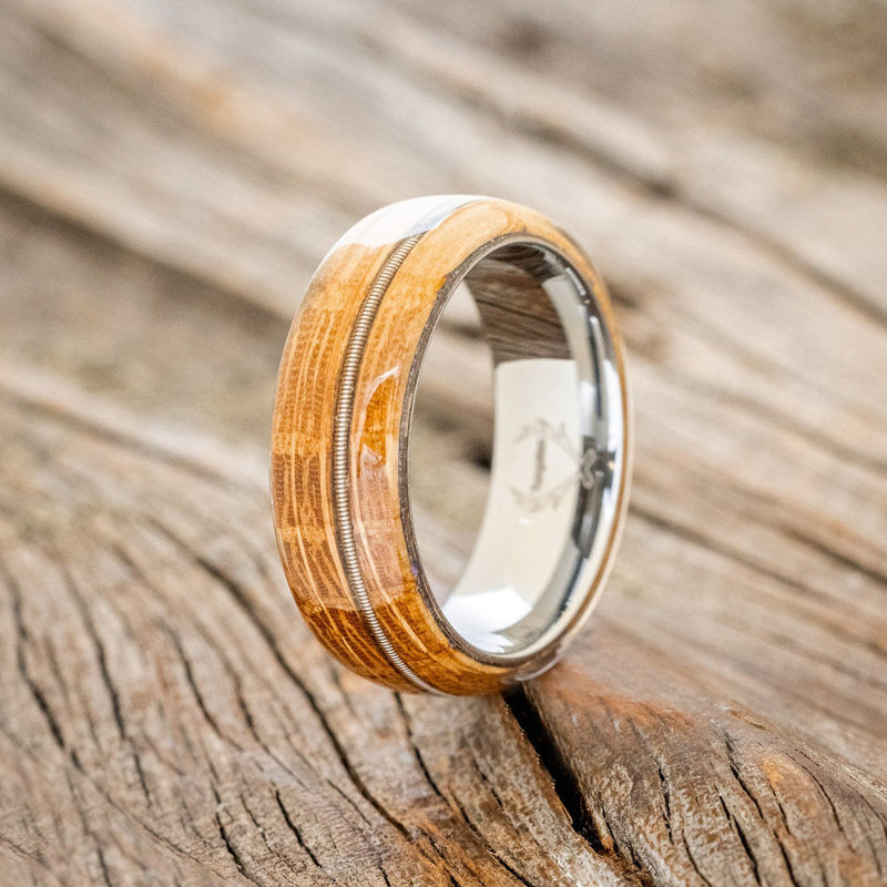 "REMMY" - WHISKEY BARREL OAK & GUITAR STRING INLAY WEDDING BAND