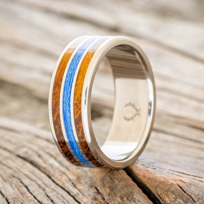 "RIO" - IRONWOOD & BLUE FISHING LINE WEDDING BAND