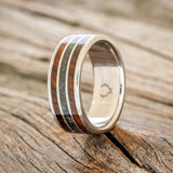 "RIO" - IRONWOOD & PYRITE INLAYS WEDDING BAND WITH HAMMERED EDGES