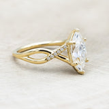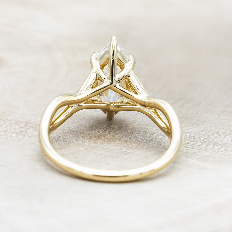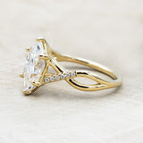 • Ring Style: The "Roslyn" is a marquise moissanite women's engagement ring with diamond accents