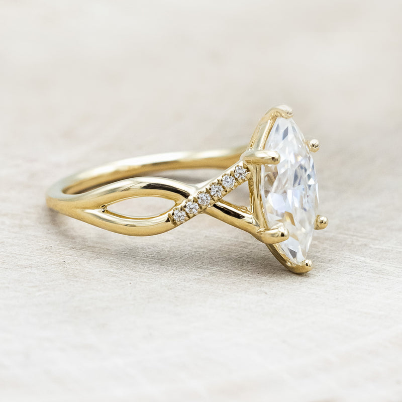 "ROSLYN" - MARQUISE CUT MOISSANITE ENGAGEMENT RING WITH DIAMOND ACCENTS