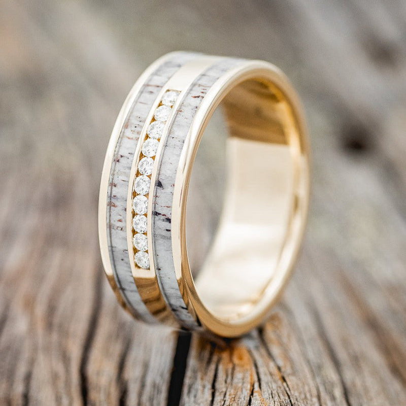 "RYDER" - DIAMONDS & ANTLER INLAYS WEDDING BAND
