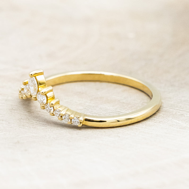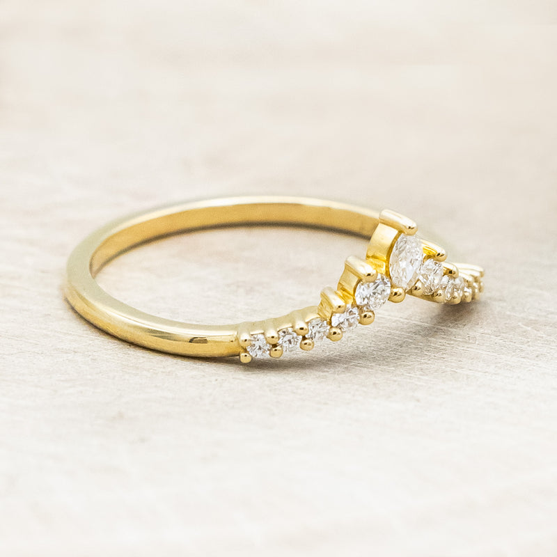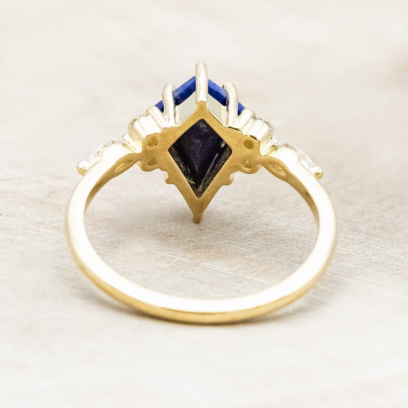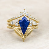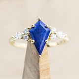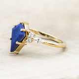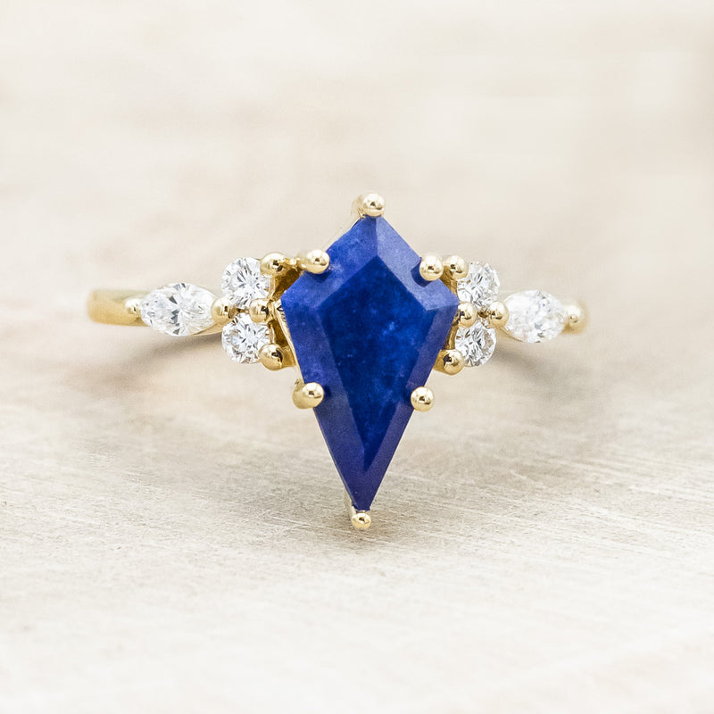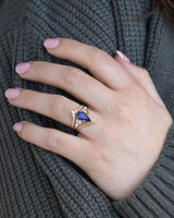 "SAGE" - BRIDAL SUITE - KITE CUT LAPIS LAZULI ENGAGEMENT RING WITH THE "FALA" AND DIAMOND ACCENTED TRACER