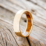 "SEDONA" - RAISED CENTER WEDDING RING FEATURING AN IRONWOOD LINING