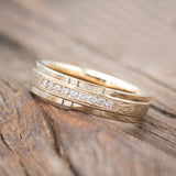 "SEDONA" - RAISED HAMMERED CENTER WEDDING RING WITH DIAMOND ACCENTS