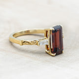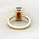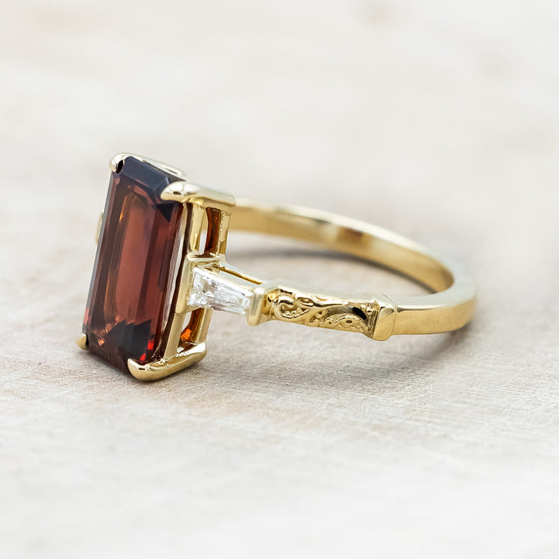 "SELENA" - EMERALD CUT MOZAMBIQUE GARNET ENGAGEMENT RING WITH DIAMOND ACCENTS