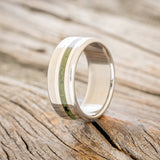 • Ring Style: "Tanner" is a custom, handcrafted men's wedding ring featuring a moss inlay and two 14K white gold (1mm) inlays. Additional inlay options are available upon request.
