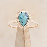 "TERRA" - PEAR CABOCHON CUT TURQUOISE ENGAGEMENT RING WITH DIAMOND HALO - READY TO SHIP
