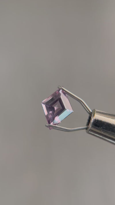 "Timeless" is a lozenge cut natural fancy spinel in a beautiful light magenta color. This beautiful stone offers incredible pink tones that are truly mesmerizing in the sunlight, with slightly darker tones more prominent in darker or indoor lighting. Spinels are associated with love, compassion, and emotional healing. In metaphysical beliefs, it is believed to promote love, harmony, and positive emotions, making it a popular choice for sentimental jewelry pieces.