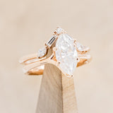 "TULIP" - MARQUISE CUT MOISSANITE ENGAGEMENT RING WITH "MELODY" DIAMOND TRACER