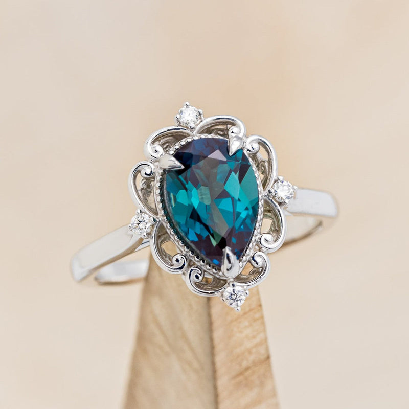 "VERA" - PEAR CUT LAB-GROWN ALEXANDRITE ENGAGEMENT RING WITH DIAMOND ACCENTS