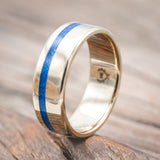 • Ring Style: "Vertigo" is a custom, handcrafted men's wedding ring featuring a blue opal inlay