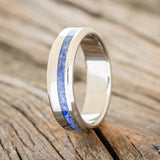 • Ring Style: "Vertigo" is a custom, handcrafted men's wedding ring featuring a lapis lazuli & fire & ice opal mix inlay. Additional inlay options are available upon request.