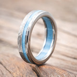 • Ring Style: "Vertigo" is a custom, handcrafted men's wedding ring featuring a turquoise lining and inlay on a hammered band
